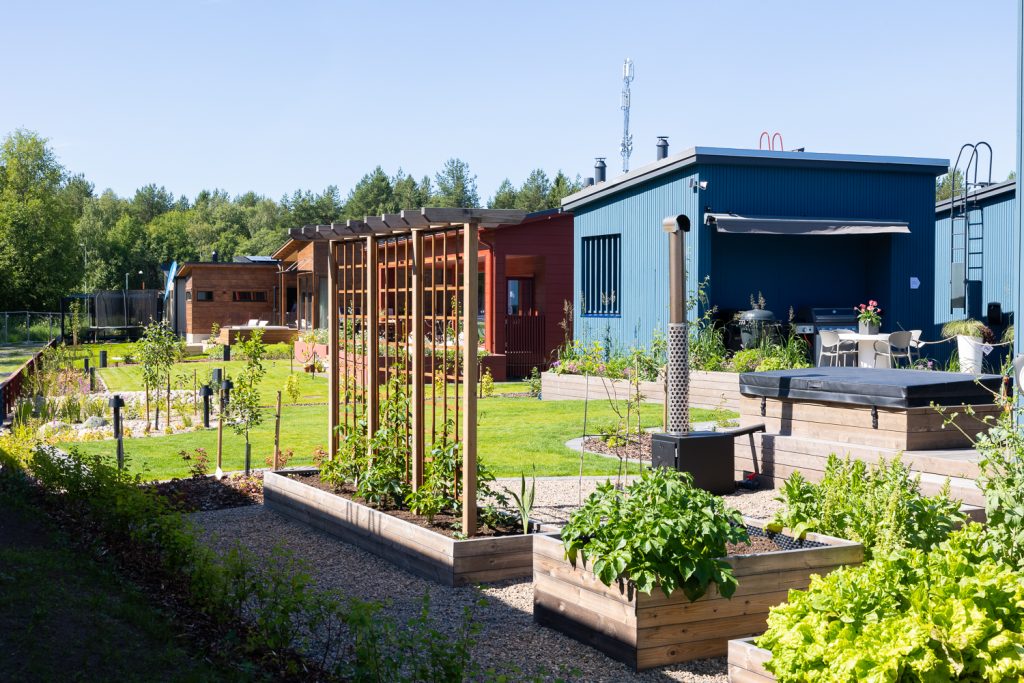 Oulun Asuntomessuilla yksi keskeinen teema on yhteisöllisyys, ja siksi asunnoilla on yhteisöllisiä pihoja, eikä aitojakaan ainakaan heti näy kaikkien pihojen ympärillä.