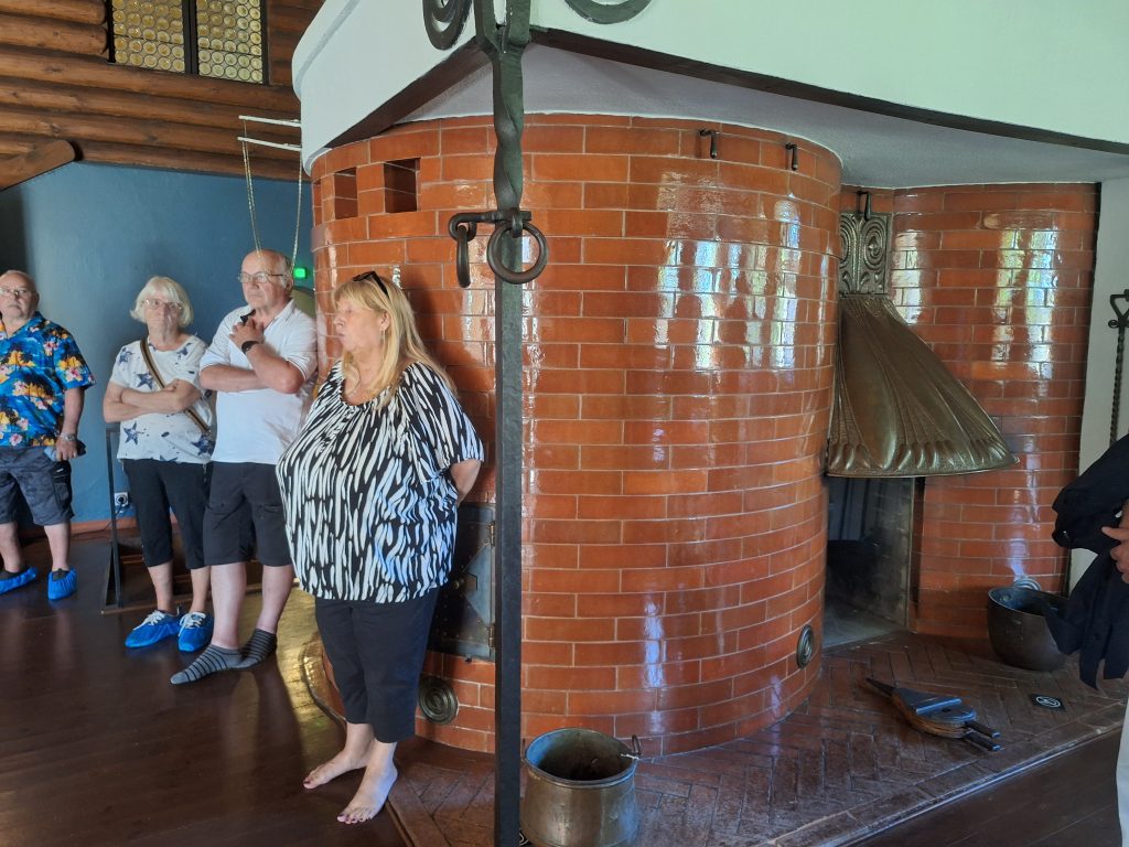 Arkkitehtien Saarinen, Gesellius ja Lindgren tarinat eivät jääneet tämän retken aikana naftaliiniin. Siitä piti huolen tapahtuman oppaana toiminut Hvitträskin entinen museonhoitaja Pepita Ehrnrooth-Jokinen, jonka sydämessä Hvitträskillä on edelleenkin aivan erityinen paikkansa. Pepita toimi lähes koko työelämänsä Hvitträskin asiantuntijana ja oppaana. Saimme normaalia pidemmän yli kahden tunnin esityksen, kuljimme upeista värikkäistä huoneista toiseen ja unelmoimme mitä siellä olikaan ennen. Kuinka moni vieraileekaan Hvitträskissä, kun aamusta iltaan nähdään sen parkkialueella autoja? Olemme onnellisia, että museo ei olekaan kiinni, kuten alun perin oli suunniteltu. Odotamme innolla, että vieläkin korjauksen alla oleva Lilla Villan saataisiin korjattua, museolla ei ole siihen nyt varoja. Aikoinaan talvellakin paikalle kaarsi takseja hakemaan asiakkaita sen ravintolasta.