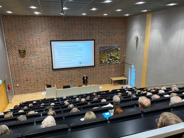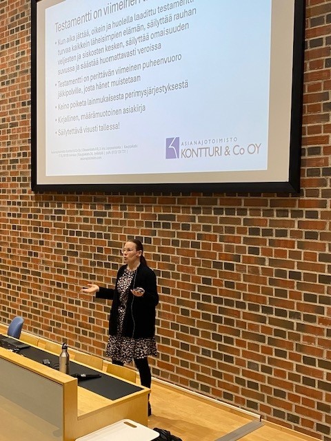 Syksyn Perintökiertueen ensimmäinen tilaisuus keräsi Iisalmen Lumo-keskuksen salin täyteen perintö-, testamentti- ja edunvalvontavaltuutusasioista kiinnostuneita yläsavolaisia. Urheilutermein ”täysi mökki” eli lähes 140 kuulijaa sai tuhdin annoksen tärkeää tietoa Asianajotoimisto Kontturin asianajajan Pirjo Mäkelän esityksestä. Illan teemaan johdatteli Ylä-Savon omakotiyhdistyksen puheenjohtaja Tarja Martikainen. Omakotiliiton kuulumisista raportoi illan juontajana häärinyt järjestöpäällikkö Sami Toivanen.