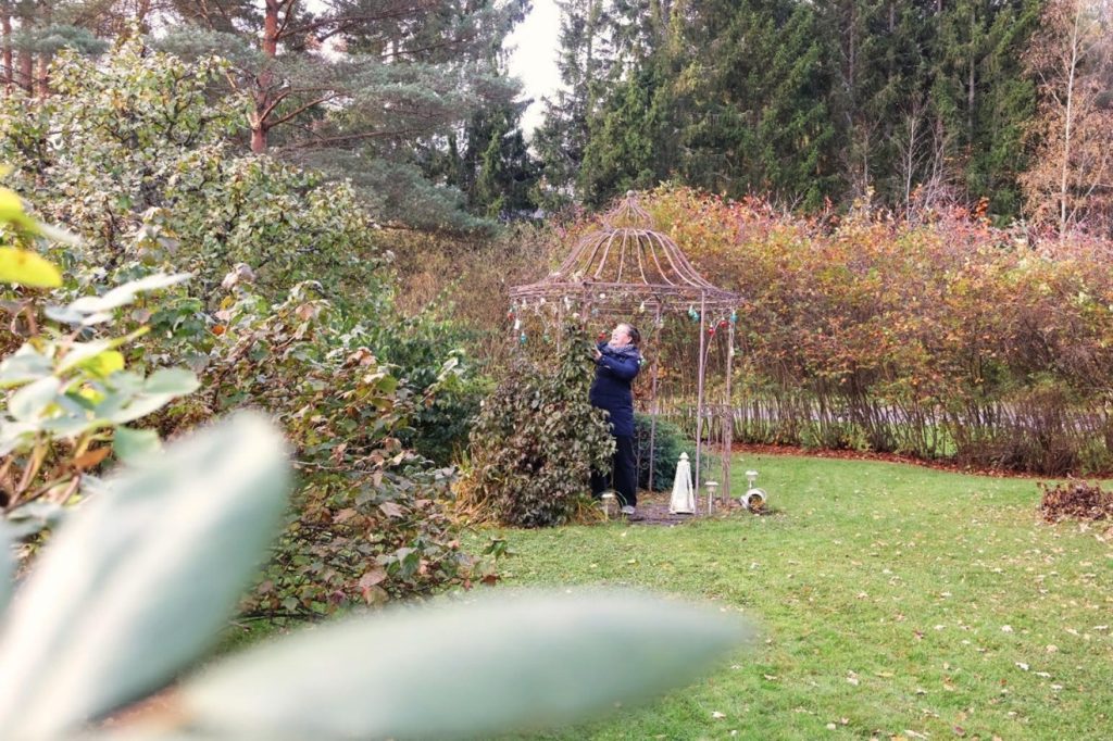 ”Maskuun muutimme osittain siksi, että löysimme riittävän ison pihan, johon voi istuttaa mieleisiä kasveja aina hyötykasveista koristekasveihin ja puihin. Pihalla on tilaa tehdä monenlaisia kokeiluja ja jättää myös reilusti kantoja lahottajien ja hyönteisten iloksi”, hän kertoo.