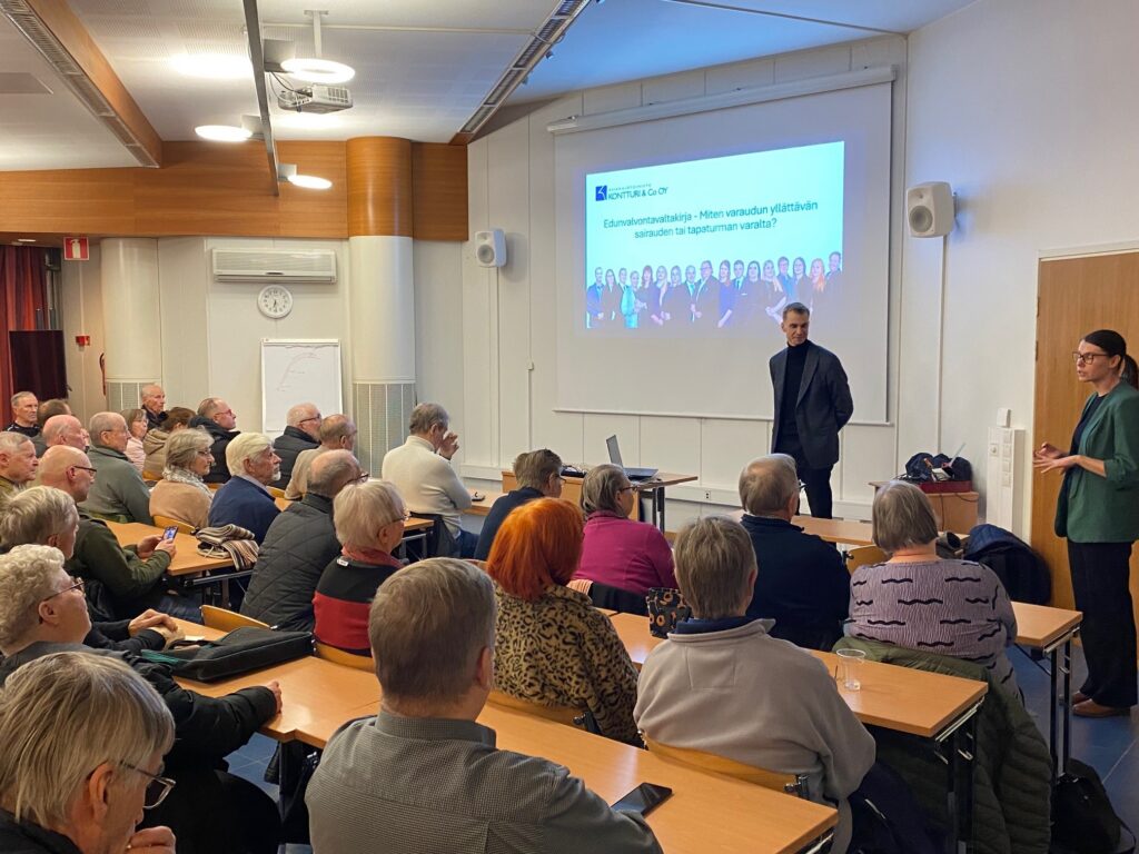 Viherlandian kokoustila täyttyi kuulijoistaan viimeistä paikkaa myöden, kun Omakotiliiton ja Asianajotoimisto Kontturin Perintöilta pidettiin Jyväskylässä 19.11.